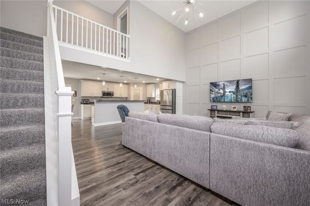 This modern two-story home features an open-concept layout with a 2 story great room showcasing two tiers of windows that provide significant natural light. The main floor utilizes durable wood-look flooring throughout the common areas. The kitchen is designed for functionality and style, featuring White Shaker-style cabinets with sleek gray quartz counters including a large breakfast bar island. A dedicated pantry with a frosted glass door provides plenty of storage space. Eating area with a sliding glass door provides access to the backyard. First floor laundry and half bath complete the first floor. 3 bedrooms with large closets, 2 baths and a loft area complete the second floor. The partially finished lower level boasts a comfortable rec room and large unfinished storage area. Oversized 2 car garage features two 220 electric lines for the electric car charger and future heater if desired. All of this on approx 0.64 acre. Close to shopping and Bike & Hike Trail.